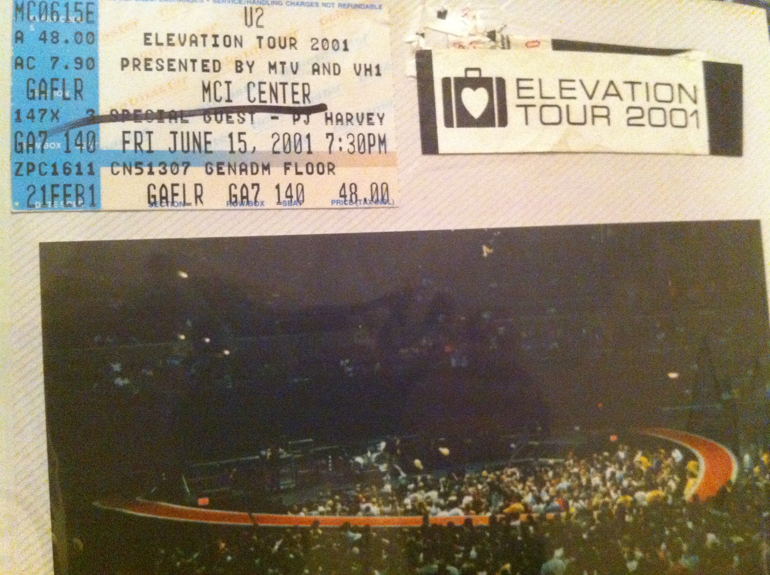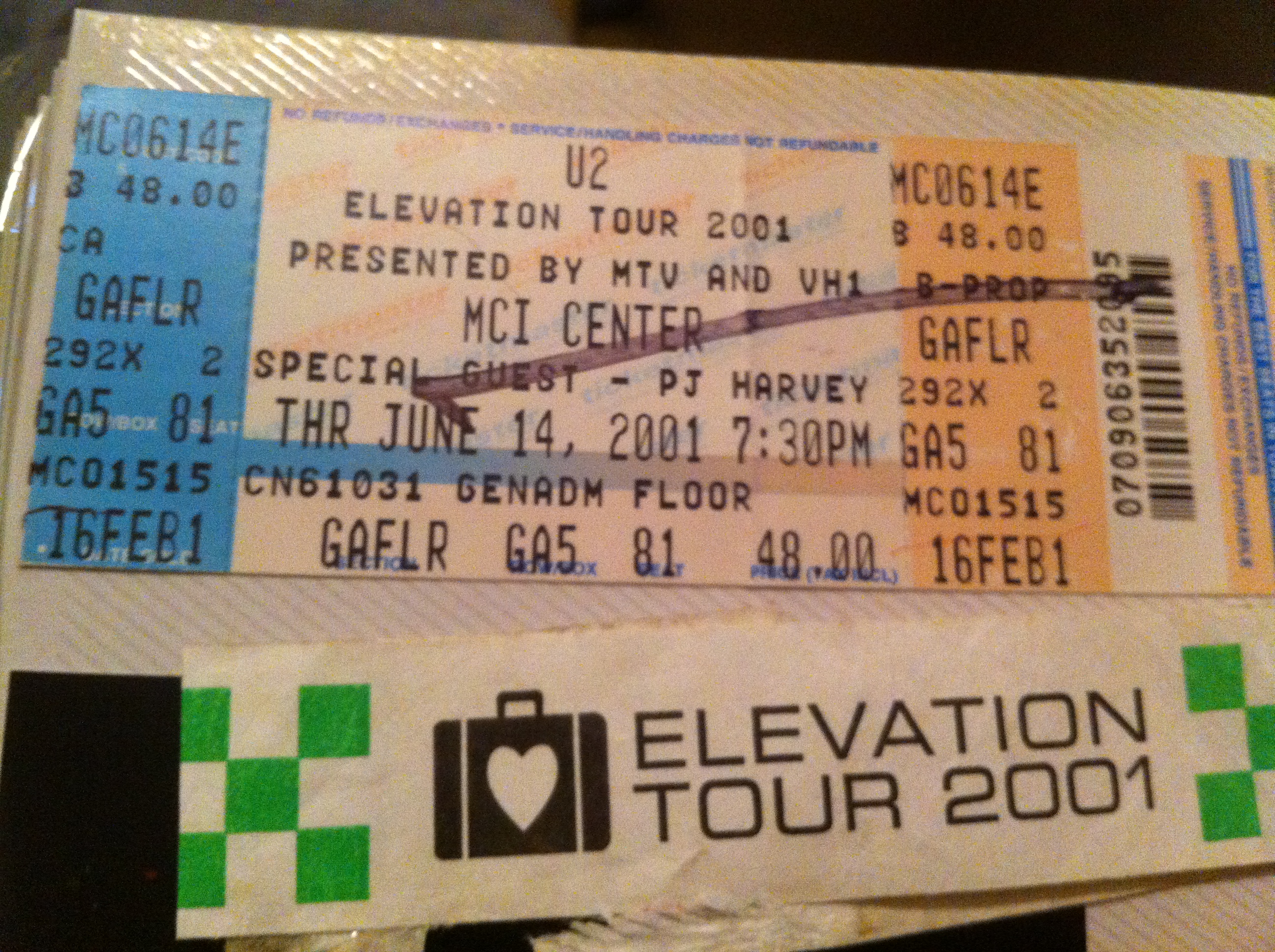 Elevation DC2 6.15.01 Set List: Elevation, Beautiful Day, Until the End of the World, New Year’s Day, Stuck In a Moment, Kite, New York, 11 O’Clock Tick Tock, Sunday Bloody Sunday / Get Up Stand Up, Sweetest Thing, Desire, Stay, All I Want Is You, Where the Streets Have No Name, Mysterious Ways, The Fly, Bullet the Blue Sky, With or Without You, Pride, One, Walk On / Hallelujah.