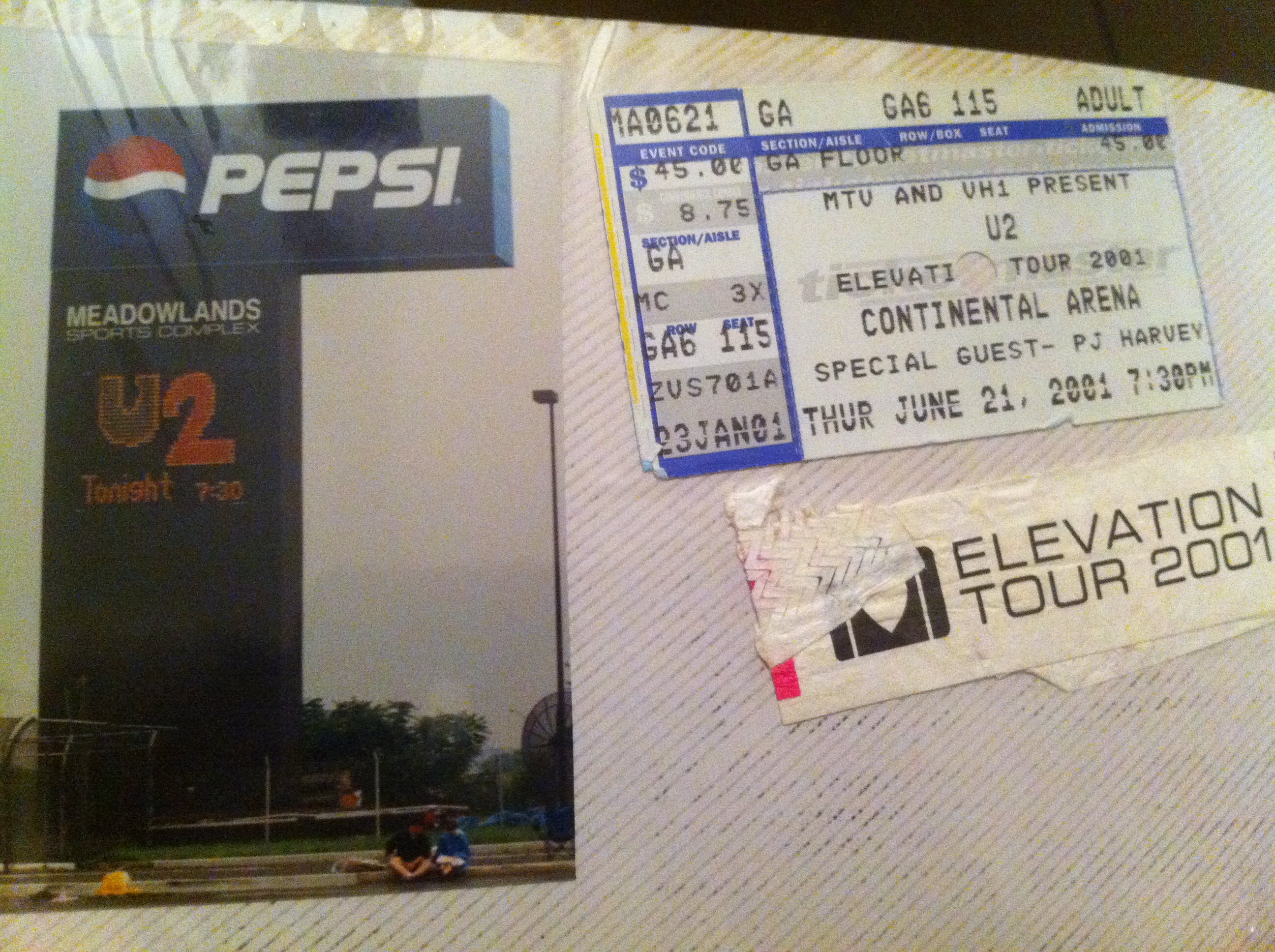 Elevation Jersey1 6.21.01 Set List: Elevation, Beautiful Day, Until the End of the World, Mysterious Ways, Kite, Gone, New York, I Will Follow, Sunday Bloody Sunday / Get Up Stand Up, In My Life / Stuck In a Moment, In a Little While, Desire, Stay, Bad / Wild Horses / 40, Where the Streets Have No Name, Pride, Bullet the Blue Sky, With or Without You, The Fly, One, Walk On.