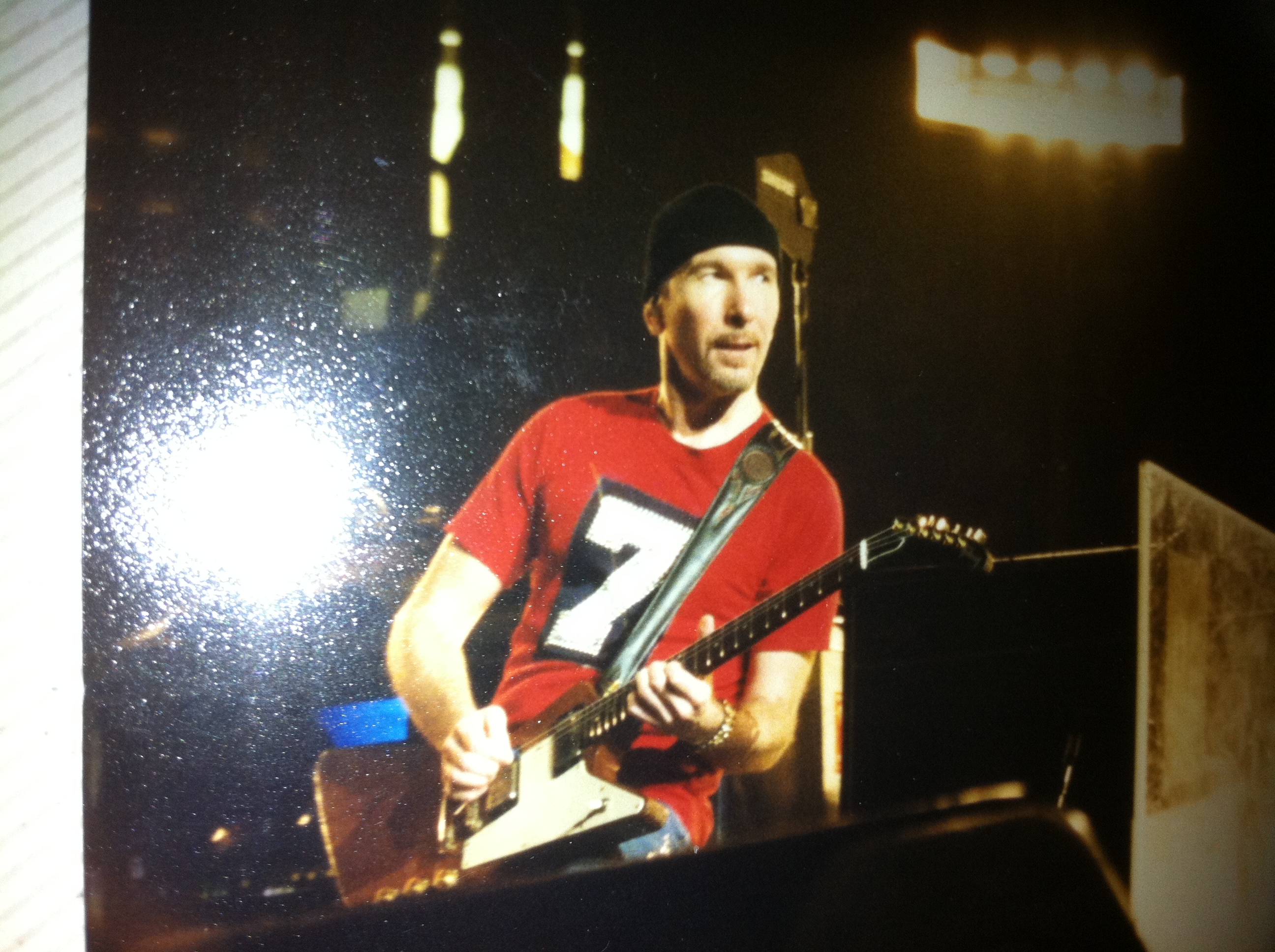 Jersey2 on June 22nd was absolutely amazing! U2 played Wild Honey for the first time. Daniel Lanois played with them on Ground Beneath Her Feet and Wild Honey. Bono finally did the extra verse to With or Without You – ‘we’ll shine like stars in the summer night.’ I got Adam’s fake pick from Dallas. I made a sign that simply read, “Thank You Larry!” I held it up as they walked on stage, and Larry nodded. Then I held it up at the end of Beautiful Day (or Until the End of the World) and Larry nodded and smiled. After the show, I held up the sign again and patted my heart, Larry saw and smiled and nodded again then walked off the stage.