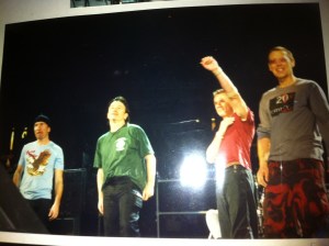 Tasha, Paola and I went to the Continental Airlines Arena right after the New York 3 show. This was to be Paola’s first GA show. We got our numbers (I was 46) and went back to our hotel to sleep. We were back in the GA line at 7am. It was the most relaxing GA line – a nice change of pace from the NY shows. We went to wait for the band to arrive from 3:00 to 5:15, but they never came. There was chaos when we returned to the GA line. The idiot security people opened up 3 gates, so those of us who had been waiting all day were right next to people who had just arrived. And all 3 of these lines were to go through one door. Sensing severe danger, Tasha, Kate and I decided to get out of ‘line’ and go back to wait for the band to come in and go into the show later. Unfortunately we missed Bono and Edge by about 10 minutes. But we did arrive in time for Paul McGuinness, but he was too mobbed to talk to. We went into the show after 7, leisurely went to the bathroom, got a snack, and watched the show from the soundboard. It was surprisingly close. Not a bad view at all. Stereophonics opened. U2 played All I Want is You instead of Bad. Jersey wasn’t as good to me this time around.