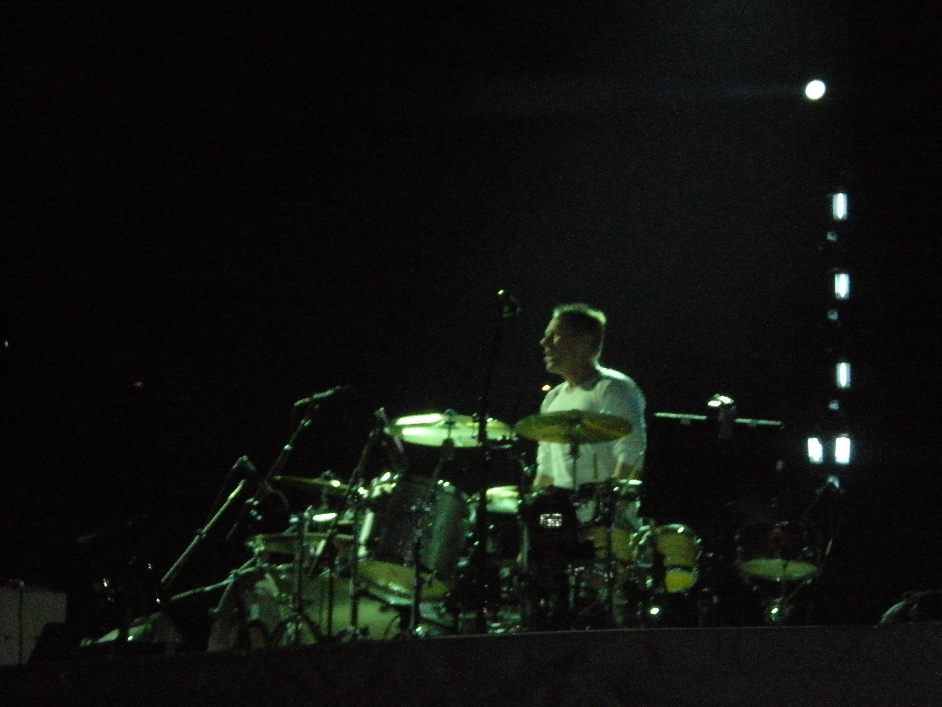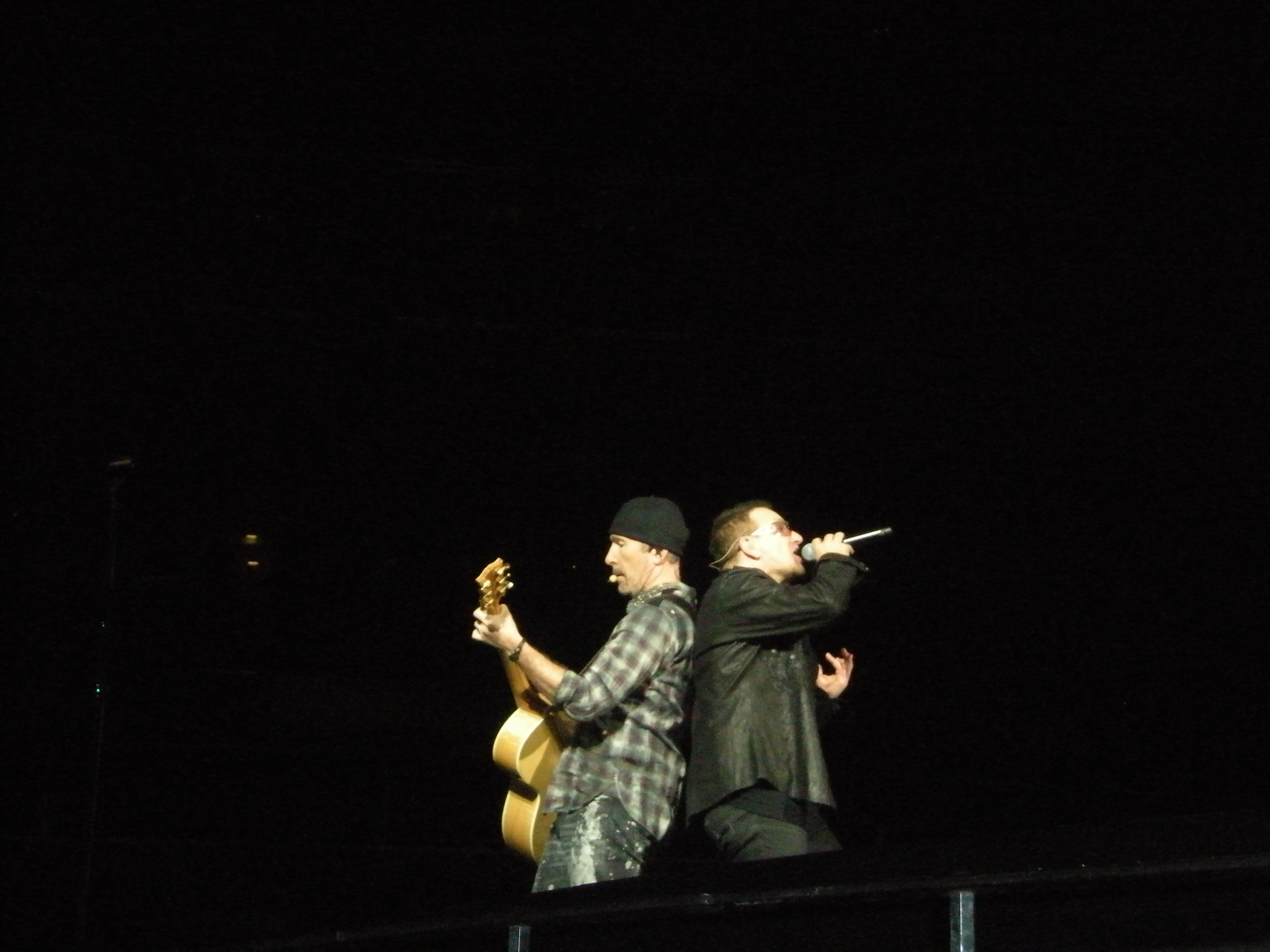 There was no No Line on the Horizon or Unknown Caller and of course no Bad or Pride. During City of Blinding Lights, Bono brought up a kid on the catwalk and ran around with him then gave him his glasses. During Sunday Bloody Sunday, Bono pulled this guy up on stage who was standing not too far from me holding an American flag. They sang and hugged. Apparently many politicians were at the show. I saw lots of security. My favorite part of the show was when Larry saw my Larry Mullen Band shirt and smiled and nodded. I was taking a picture of Adam for Tasha with the bright light behind him so he looked almsot angelic. The bright light was on Adam and I was right in front of Adam so the light was on me. Larry was turning around to face the back for Beautiful Day. And as he was turning, I started jumping and screaming and that’s when he saw me. A girl 2 people down came up to me after the show and said, ‘I saw Larry smile at you.’ AAAHHHH!!!! Great show! I’m standing rail again!