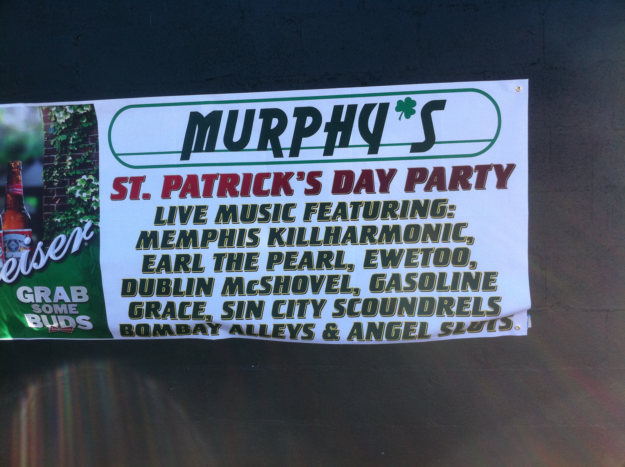 I had a great time at Murphy’s in Memphis for St. Patrick’s Day and will definitely return next year. In fact, I think I’ll check out their music schedule to see who is playing because it is such a great laid back non-college kind of hang out and only a mile from house. I had a great time!