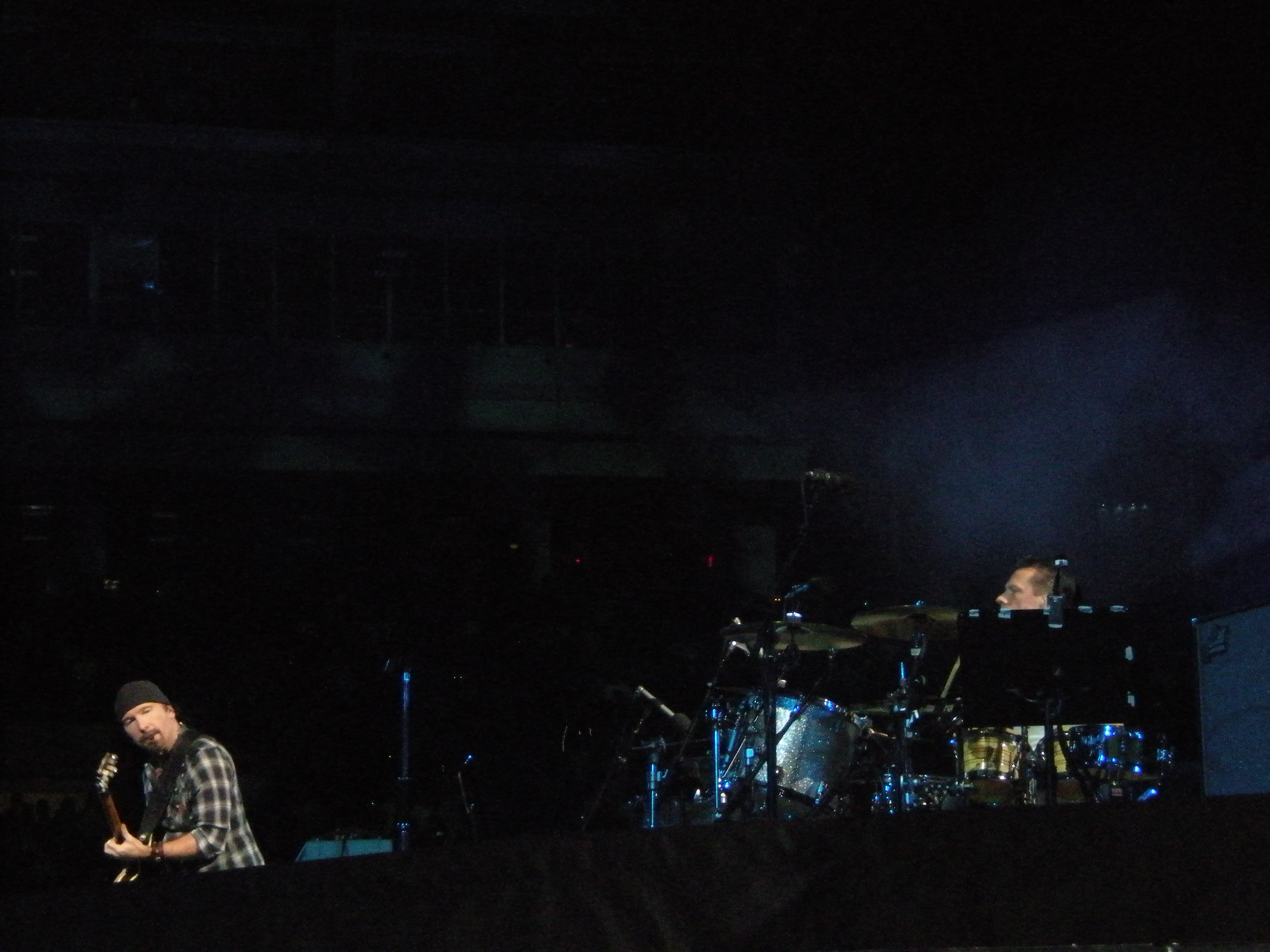 This is my favorite show of the tour – Tasha’s too! It was so relaxing and we were at the rail – side of Adam. Same set list as Oklahoma, except Bono sang ‘Viva Las Vegas’ after ‘Still Haven’t Found/Stand By Me.’ And during the band introductions before ‘Still Haven’t Found’ he called Larry the ‘Elvis of U2.’ And the vocals were really loud, so I could really hear Larry’s ‘Hey Hey Heys’ during ‘Boots’ again. I left the front rail at the end of ‘Vertigo’ so I could see Larry start ‘I’ll Go Crazy.’ I was back there alone again wearing my Larry Mullen Band tee but I wasn’t jumping and screaming this time, but he still saw me, smiled and waved. And then he went right instead of left, so I could follow him! I stayed back and watched the rest of the show behind the stage. He was facing the back during ‘Sunday Bloody Sunday.’ Then Bono came back and was singing to me. I took so many pictures of Larry behind the stage. I love it back there. Black Eyed Peas opened again, but they weren’t as good as they were in Oklahoma. Bill Clinton was at the show, but we didn’t see him. Larry’s dad was there too, but we didn’t see him either. We thought U2 would come out after the show, but they didn’t. Vegas set list: