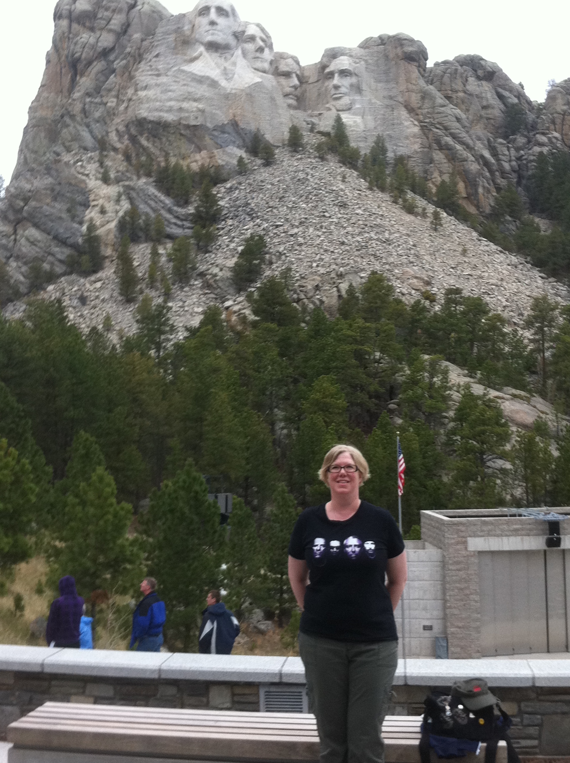 Even though it was a cold, windy and then rainy day, today was a great day. Today we went to Mount Rushmore and Crazy Horse monuments. Mount Rushmore was the first place I planned to see, other than U2 shows, when I started planning this trip last year. Mount Rushmore was everything I dreamed it to be. It was more than just the faces on a rock, although that was amazing and I just wanted to stay there all day and marvel at it. The Mount Rushmore memorial is situated in a beautiful setting with lots to do. We watched a movie about it, walked the President’s Trail around it, had lunch in the cafe and bought books and souvenirs in the bookstore and gift shop. I loved it!