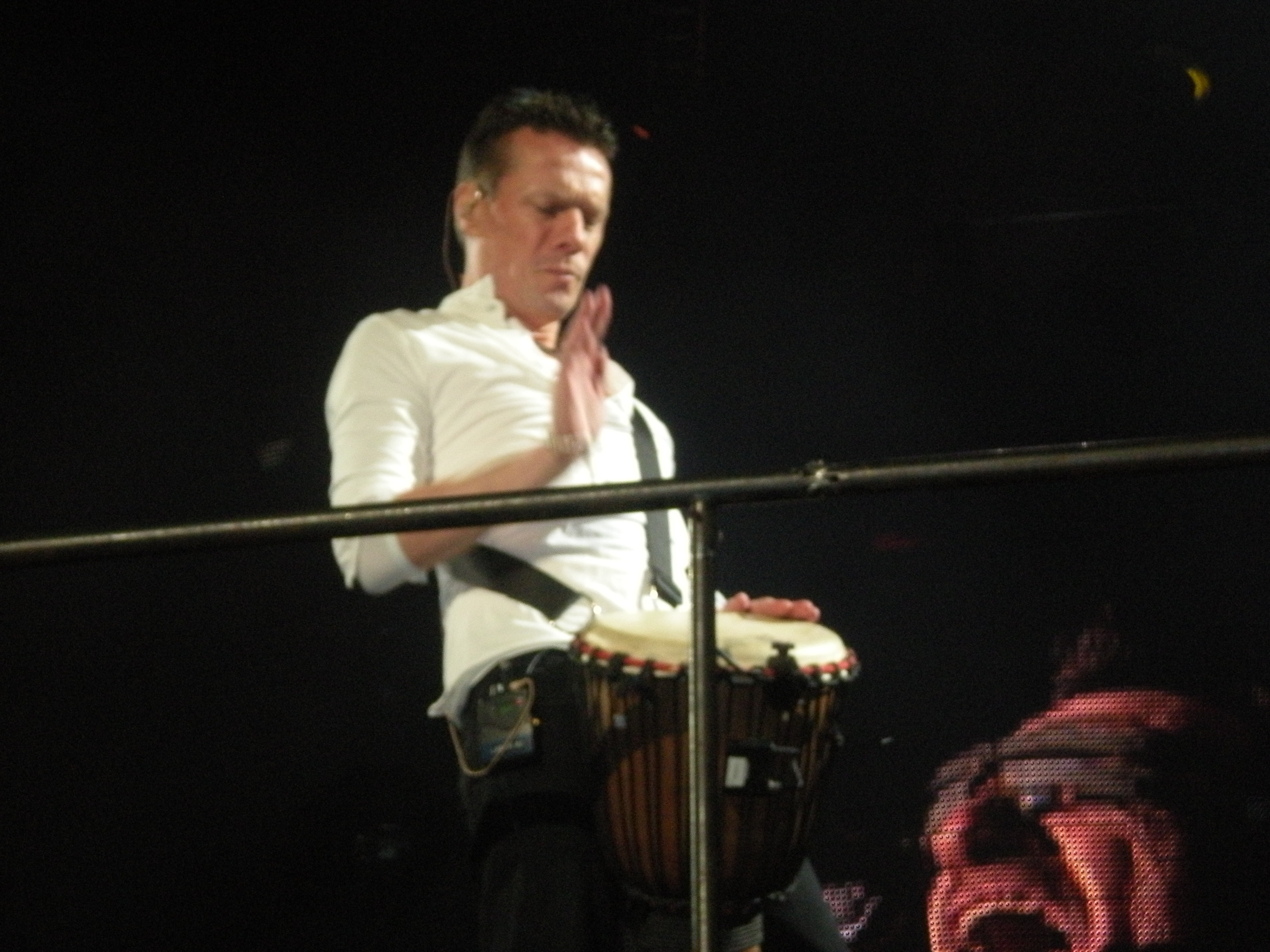 Larry and his drums rotated around on 3 songs this time, as opposed to the 2 times he turned around on 360 in 2009. He turned around and faced the back of the stage during Mysterious Ways, All I Want is You, and Sunday Bloody Sunday. Of course I went behind the stage each time. As I did when Larry started back for I’ll Go Crazy if I Don’t Go Crazy Tonight. He again saw me and smile and nodded.