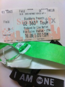 The U2 360 show in Salt Lake City was almost perfect – great crowd, great performance, great experience! Highlight of this show for me was hearing Love Rescue Me for the first time – brought me to tears. Looking forward to my next 14 shows because I think each one will be better than the last. I have over a week before my next show in Seattle though. In the meantime, I’ll sight see in Salt Lake City, play the slots in Reno and Tahoe and check out the cool city of Portland. See you On the Road with U2!