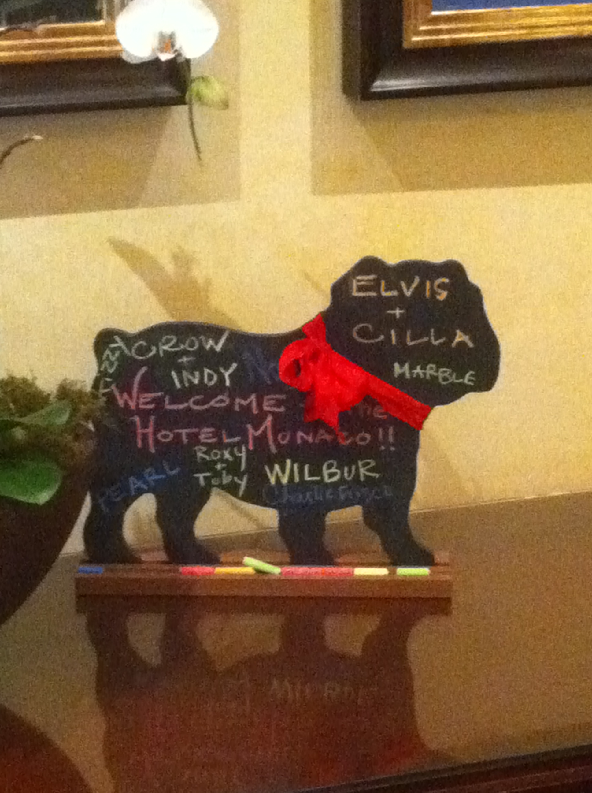 This morning I finally got to meet Jeri, the General Manager of the Hotel Vintage Plaza, as well Georgie, Diva of Pet Relations. Georgie is much calmer than Elvis and Cilla. Jeri is the nicest, most generous person! She has contacted all the Kimpton hotels I’m going to be staying at this summer asking them to look out for me and treat me well. I don’t think anyone can treat me as well as Jeri though. Although Jonathan at the front desk is a close second. He left me a U2 cd for my drive to Seattle, as well as directions.