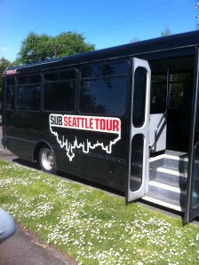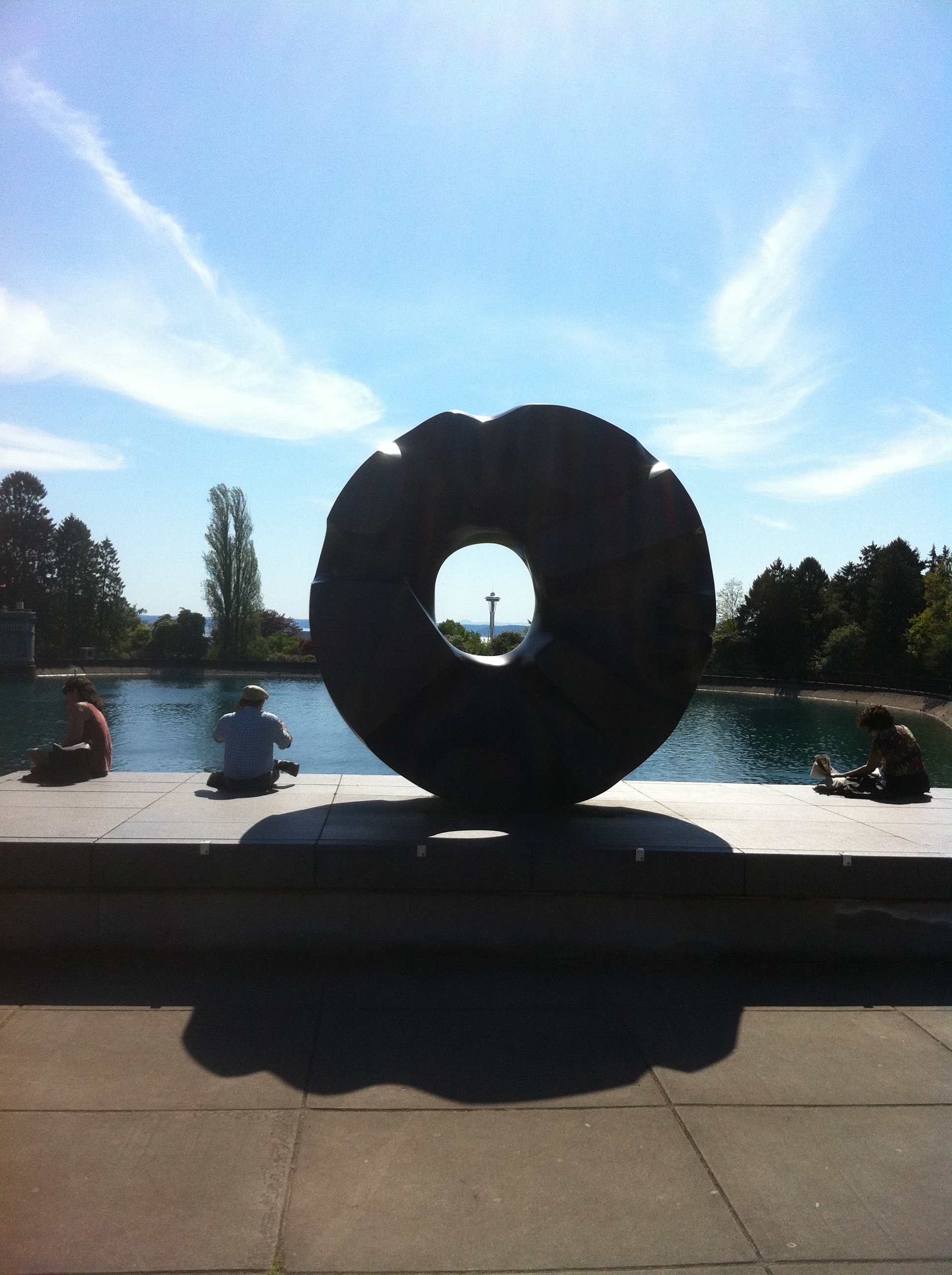 Now it was time for our Sub Seattle bus tour, which had tried to take at 1 but got sidetracked by Patrick’s U2 show. We lucked out and it was only Jenny and I on the tour. This Sub Seattle tour was supposed to tell us the non-toursity non-obvious facts about Seattle. We went to Beacon Hill, Washington Lake and my reason on going on the tour Kurt Cobain’s house. We also saw the Black Hole Sun sculpture, which inspired Soundgarden’s song. Looking through the hole, you can see the Space Needle in the distance.