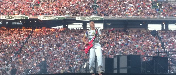 East Lansing was good, but not my favorite show so far. The crowd was loud, but more cheering than singing along. Although they did really love I Still Haven’t Found What I’m Looking For – as they should. Please click here to see all the photos I took in East Lansing http://www.facebook.com/media/set/?set=a.10150249983514168.337102.734599167&l=66317ec837