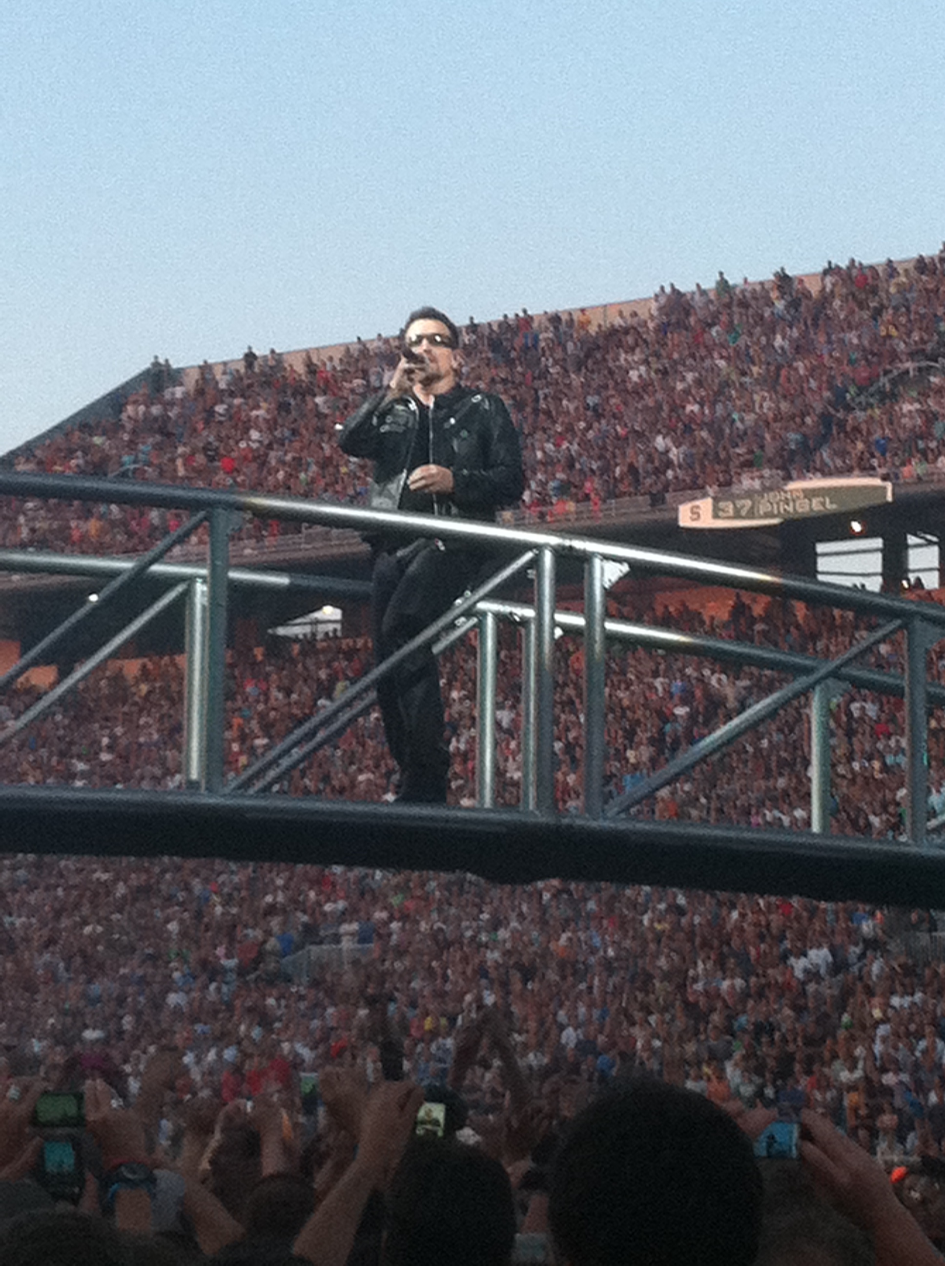 Anaheim1 stands out because Larry smiled and waved at me as he entered the stage and when he left the stage. It was great to watch the show with my new friends Chuck and Michelle. During the introductions, Bono said Larry was the one they owe everything to. East Lansing was good because it was a really relaxed, not crowded show and the audience was really loud, especially for a small general admission. Also, the set list was similar to Anaheim2 and Baltimore, which is great. Salt Lake City’s highlight was Love Rescue Me – I cried. It’s one of my favorite songs, and I’ve never heard it before and U2 rarely plays it. Denver was cool because I was in the stadium where my beloved Broncos play, and it was the first show of this leg of the tour. It was also the first time I heard Zooropa and Scarlet.