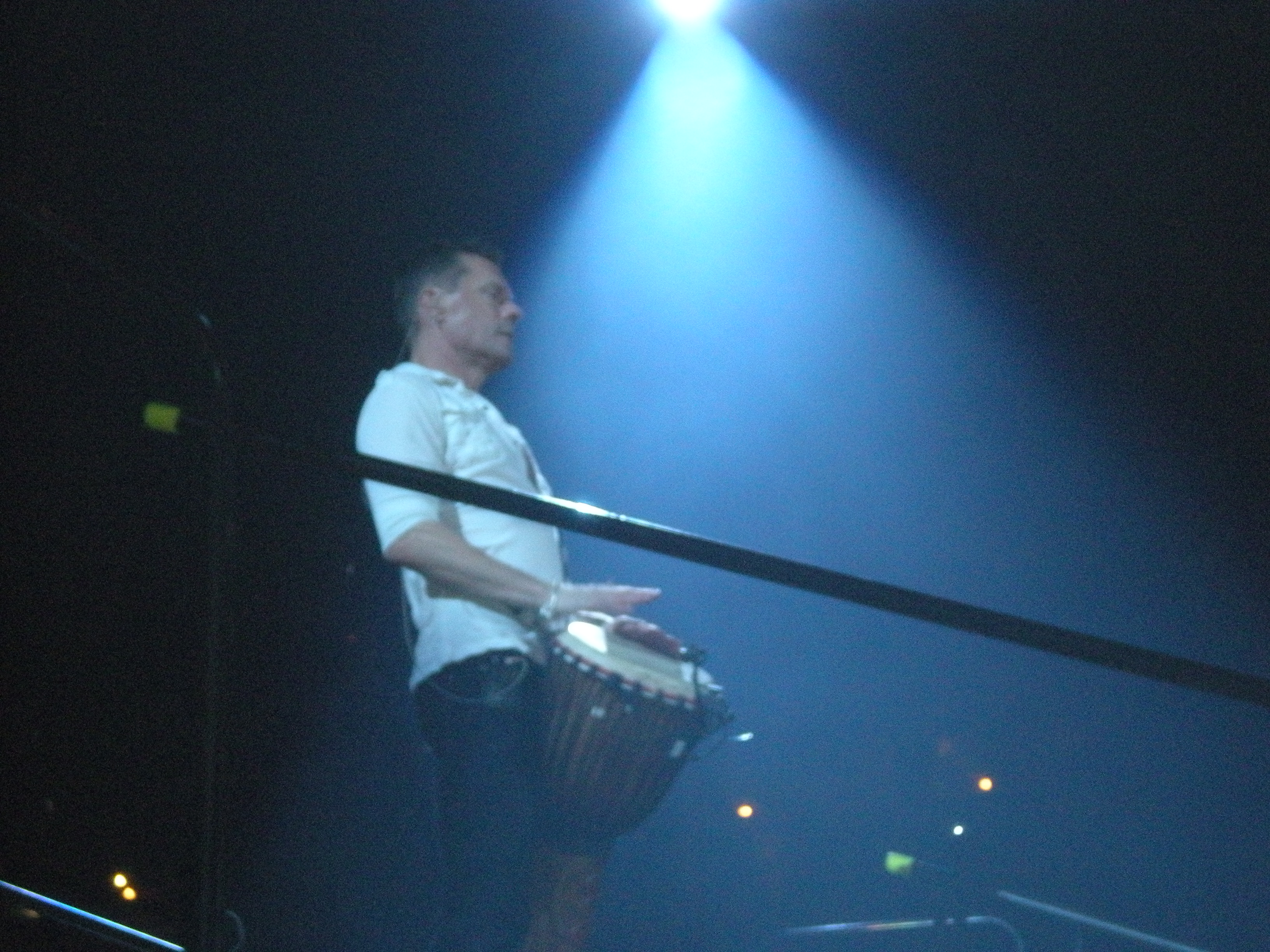 At the end of the Pride, I went behind the stage and stayed there until Larry started I’ll Go Crazy. I got my usual nod and smile from Larry. Then I moved around to wait for Larry to make his way around the catwalk and watch him trot over the bridge and throw his conga to Sammy. Please watch my video of Larry during I’ll Go Crazy http://www.youtube.com/watch?v=zubFFuEolLg
