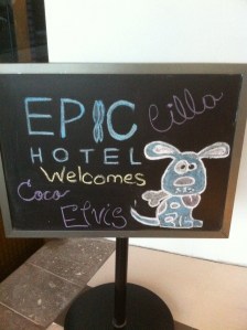 Jacqueline Ploettner, Resort Manager at Epic, heard about my U2 360 tour across America and graciously upgraded me to a fabulous suite with separate living room, bedroom, huge bathroom, and a wrap around balcony with doors off the living room and bedroom. I could live here! Because she knew I had a long drive from Michigan and would be arriving late, Jacqueline had a cheese plate and chilled white wine waiting for me – and this amazing chocolate U2 guitar! There were also framed pictures of my Elvis and Cilla and U2.