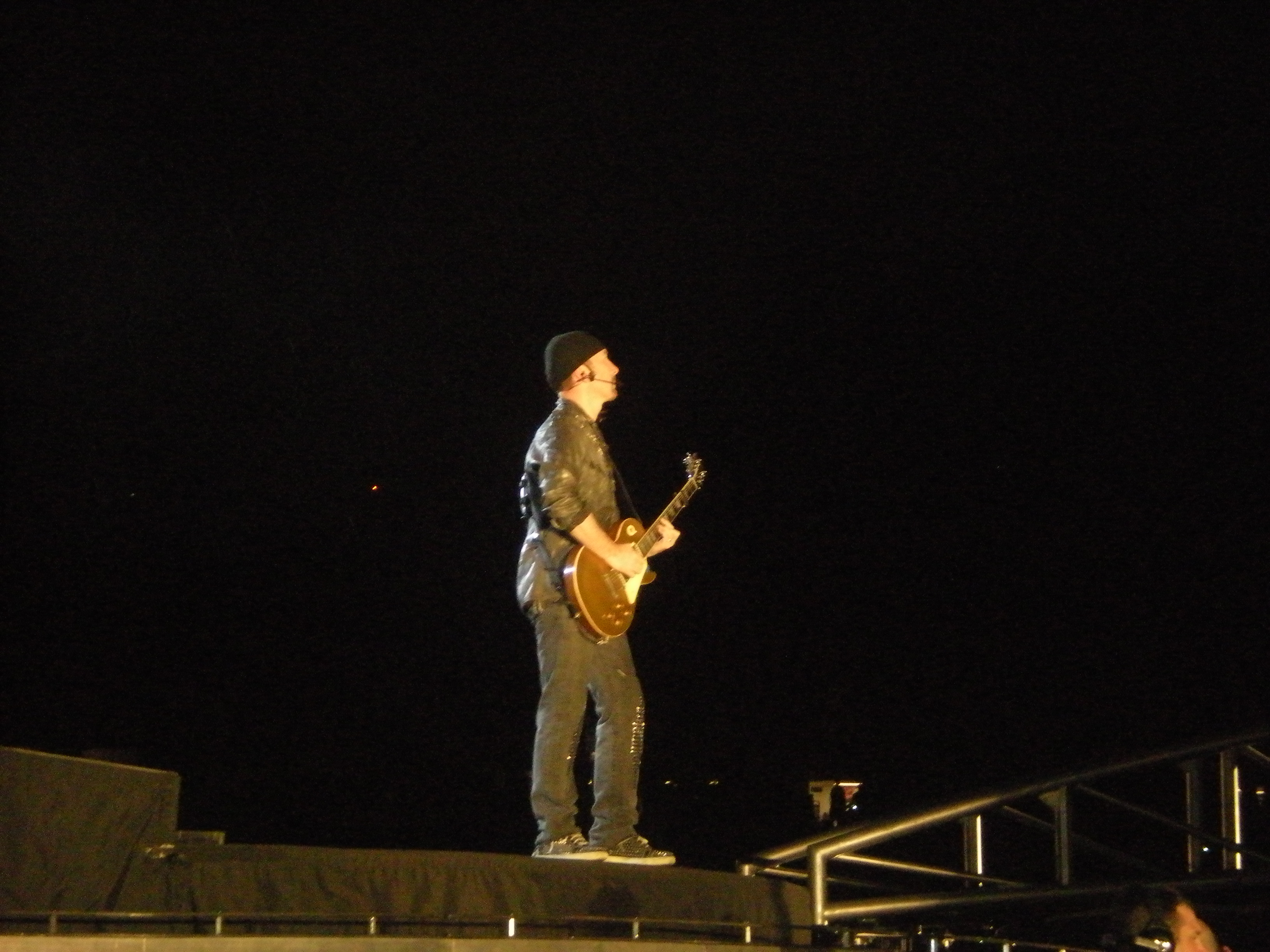 Edge had to plug his guitar in Deena. He couldn’t go on the bridge to do the UTEOTW solo unfortunately – he wasn’t hiding from the rain 😉
