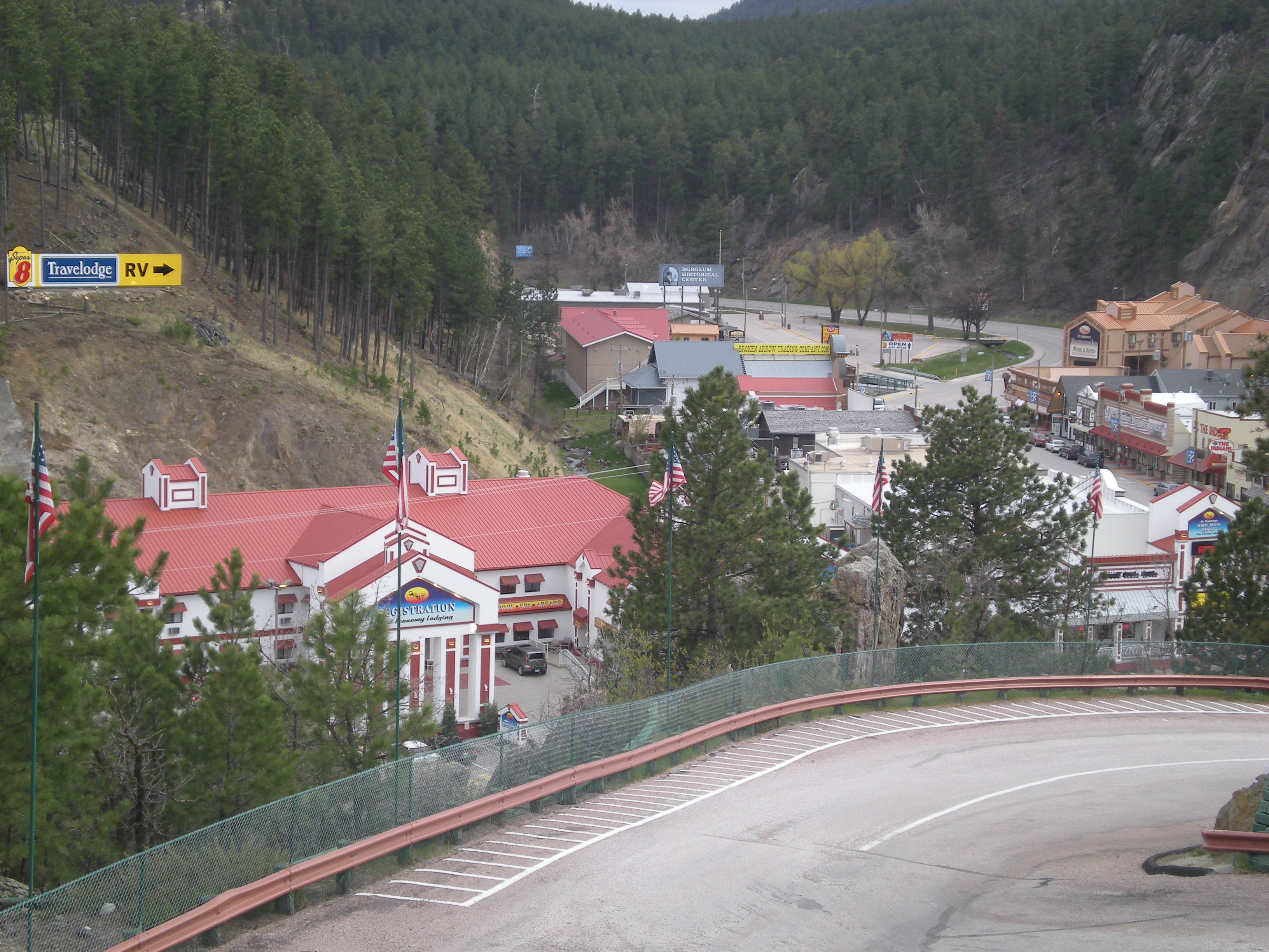 We left Omaha Monday morning at 8am, stopped at Subway in Iowa for breakfast, a Cracker Barrel in Sioux Falls for lunch and then arrived at our hotel the President’s View Resort in Keystone, South Dakota 548 miles later at 5:30pm MST. Our hotel overlooked the town of Keystone, which looked like an old western town. From my Mom and Aunt Pauline’s balcony, we could see Mount Rushmore in the distance. Mount Rushmore was the first place I planned on visiting on this trip since I first planned it back in 2010. My room was around the other side of the hotel on the first floor – the pet rooms. After settling in, we drove down the steep hill to Keystone and had dinner at the Railroad Family Restaurant in Keystone – it was not very good.