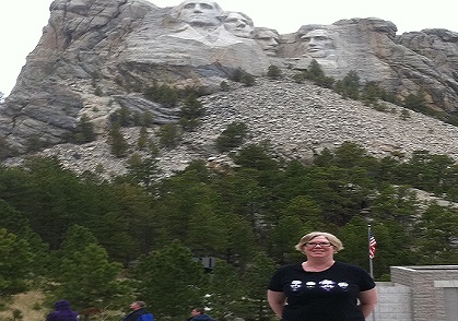 After breakfast, we were off to Mount Rushmore! I was so excited! We arrived, and I looked up and it was just magnificent! Undescribable and hard to imagine unless you’re actually there. It was everything I thought it would be and more. I didn’t know there was a park around it that you could walk through called President’s Trail, which we did – even my mom. There were book shops, museums and a café. I was wearing my U2 I’ll Go Crazy shirt with the 4 faces of U2 on it and a guy asked me if I was wearing a Mt Rushmore shirt – because it sort of looked like the faces on Mt Rushmore. Well that gave me the idea to take a picture of me wearing the four faces of U2 in front of the four faces of Mt Rushmore. I just wish I had either left my hat on or combed my hair out. I bought many souvenirs, but no tee shirt. I swore I wasn’t going to buy any tee shirts on this trip, but I broke that promise to myself later. I bought a keychain, a magnet, a small model of mt rushmore and a book about the making of mount rushmore. Buying books from everywhere we visited came to be my new souvenir, as were magnets because they are easier to display than keychains – my previous souvenir of choice. We had a great lunch at the café with fantastic customer service.