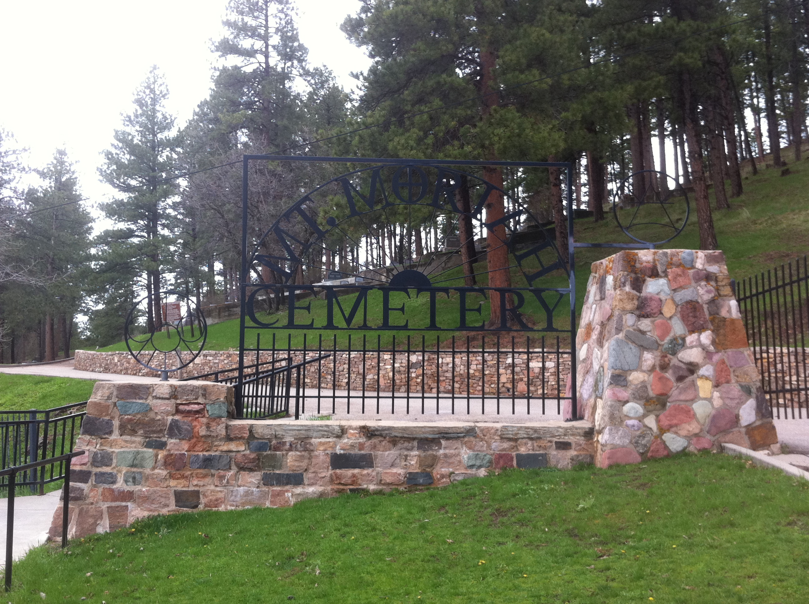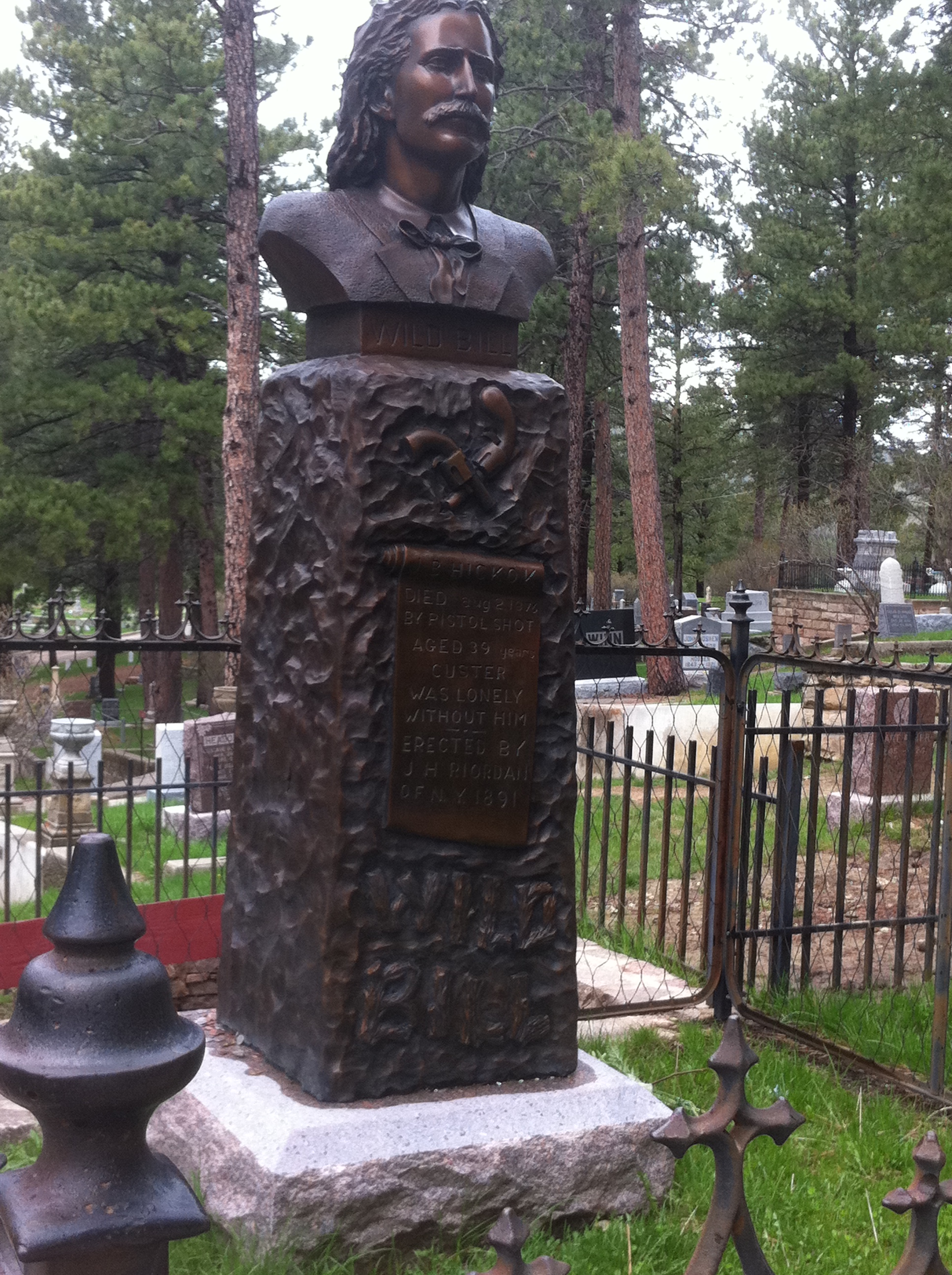 After visiting Mount Rushmore, I didn’t care what we did the rest of our time in South Dakota. We decided to go to Deadwood and Sturgis on Wednesday. We had breakfast at that same little restaurant with the ok buffet. Deadwood was not what I thought it was going to be. I pictured it as this old western town, and it sort of was but a little too modern. We first stopped at the Mount Moriah Cemetery where Wild Bill Hickock and Calamity Jane were buried. It was a great old cemetery. I don’t know why I’m so attracted to cemeteries – maybe it’s the history. I again bought a book about the history of Deadwood and Mount Moriah as my souvenir. The cemetery overlooked Deadwood. We drove down and parked in a garage and walked to all the casinos, bars and restaurants. We played the slots at Bullock’s Hotel and Casino. I didn’t want to play too much, or lose too much, as we were going to be spending five days in Reno soon. We went to Saloon #10 where Wild Bill Hickock was shot. I bought a tee shirt at the Harley Davidson store. This is what started my downfall of buying tee shirts as souvenirs, but this one was blue and orange so I had to get it. We had lunch at Miss Kitty’s Cantina, which was in Miss Kitty’s Gambling Saloon. Miss Kitty was the Belle of Deadwood – she also has the same name as my mother.