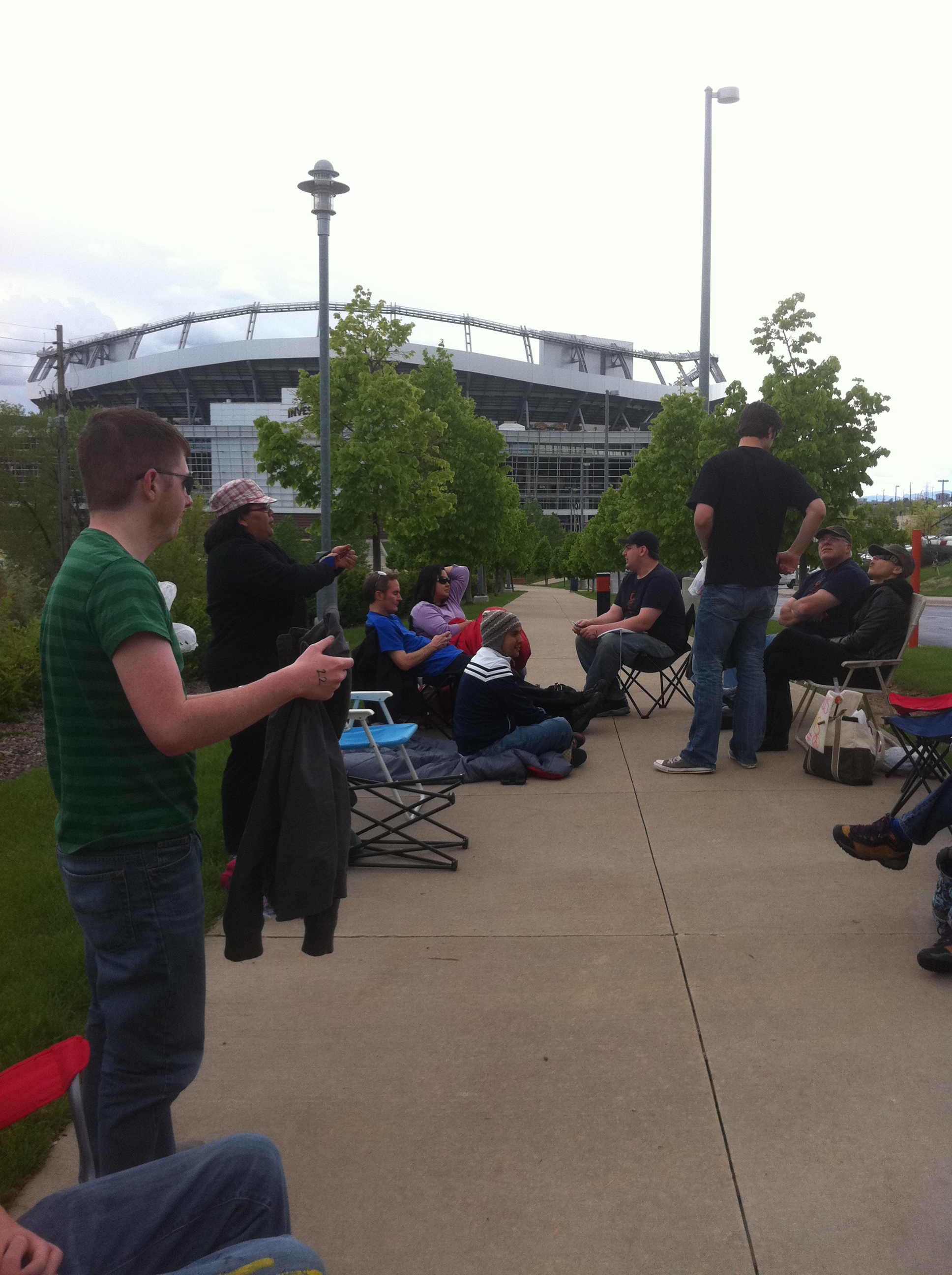 Because I couldn’t sleep, I took the dogs for a walk around the stadium at 6am. I was SO excited to walk around Mile High stadium where my beloved Denver Broncos play! The GA line had already started – right in front of our hotel. I was not getting in line though. I learned back in 2009 that there was really no point to it for me. Plus I wanted to enjoy Denver and spend time with my mom and aunt. We had breakfast in the hotel restaurant. A lady from a radio station in Salt Lake City heard about my trip and wanted to interview me on her radio station. So I called her and she interviewed me on the phone for a few minutes. I never got to hear the interview, but it did air later that day.