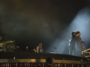 During Get on Your Boots right before my favorite “LET ME IN THE SOUND”, Bono said, “Larry Mullen!” Apparently he did this at most shows, but I never heard him because I was too busy screaming. I would get SO excited for Get on Your Boots! Before Magnificent, Bono said, “Here comes the Boss – the Arch” (referring to Arch Bishop Desmin Tutu and his part in the Magnificentremix.