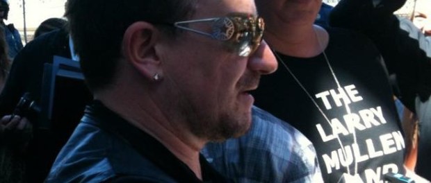 After a short time, we saw the flashing lights of the police escort and black SUVs. Edge, Bono, Adam AND LARRY drove into Qwest Field right in front of us. We looked down the long driveway and saw Bono get out and head back toward us. He hopped on the back of the policeman’s motorcycle and in seconds was talking with us. Jenny and I were in our ‘Larry Mullen Band’ shirts as usual. I shouted, “Is Larry ever coming out to greet the fans?” Bono responded, “He only likes you. I love you.” Then Bono went on to say, “You like that kind of cold stare” (referring to Larry). Before Bono was about to leave, he asked the small crowd of about 30 people, “Where are the Larry Mullen people?” I shouted, ‘Right here!” and pushed my way toward Bono. He read my shirt as if to make sure I was the ‘Larry Mullen Band’ girl he had been talking to earlier. Then Bono asked, “Do you have a message I can deliver?” I was confused and frantic. I thought he was going to tell me a message from Larry, but I quickly realized what he had said and I replied, “Yes, tell Larry to come out in Oakland since he didn’t come out here.” He said, “OK.” I then went on to tell him that I would be at all the US shows, but I don’t think he heard me. Bono then asked my name and repeated it back to me, “Deena.” When he got in his golf cart to go back, I saw him write something down. I was hoping it was my message to Larry. I had no idea what this conversation would eventually lead to almost two months later in Pittsburgh.