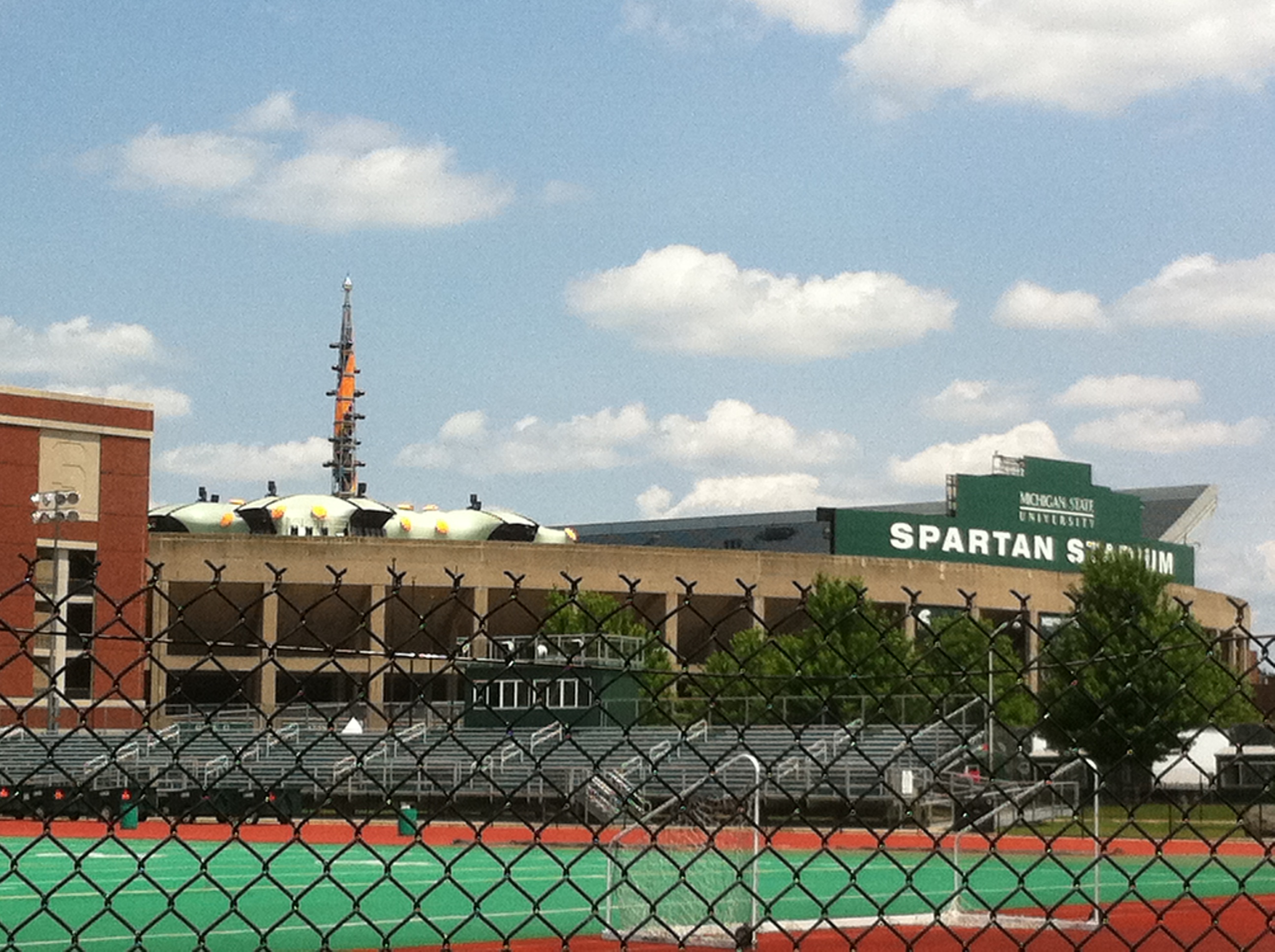 The U2 360 show at Michigan State in East Lansing was good. The same set list as Baltimore, except Hold Me Thrill Me Kiss Me Kill Me was played instead of Ultra Violet. It stayed light outside through Elevation, which was really cool because I’ve never seen a U2 show in the daylight before. This East Lansing show was the least crowded 360 show I went to, even though it was sold out. They didn’t sell many GA tickets, so there was plenty of room inside the inner circle and the rest of the floor wasn’t even half full. There were no red zones and the catwalk of the inner circle went almost to the stands.
