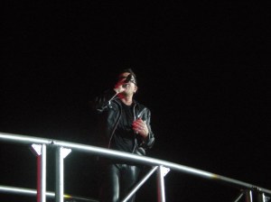 After Moment of Surrender, Edge, Larry and Adam were walking off stage when Bono announced they had a special guest. A guy appeared on stage and played guitar to All I Want is You while the rest of the band joined in. He dedicated the song to his wife and then Bono gave him his green ‘Goal is Soul’ guitar. Security was really annoying and wouldn’t let us stand to watch U2 walk out of the stadium, but we managed anyway. After screaming LARRY a few times, he finally turned to me and smiled and waved. As we were walking out of the stadium, we noticed the fan who was on stage playing All I Want is You was walking out right in front of us. He was blind, and he didn’t have the guitar with him. He said he had a sign saying something like ‘pull a blind man up on stage’ and they were mailing him the guitar. He also said he didn’t realize what was going on. He thought the concert was over and then Bono pulled him up on stage. I later realized he was the same guy who had been emailing me earlier that day looking for a GA ticket. Please watch my video with that fan, Adam, playing All I Want is You with U2.