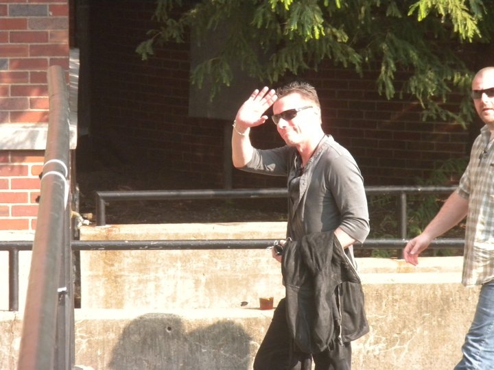 My friend Tasha flew in the morning of the U2 show in Nashville. We relaxed in our hotel room in the morning, then had lunch at Blackstone on the way to Vanderbilt Stadium, which was about a 7 block walk. We arrived at the stadium and talked with old U2 friends and met new ones. We immediately discovered where the band was going to enter – we saw the signs for the dressing rooms on the building attached to the stadium. Since it was hot and sunny, we decided to stand in the parking garage to wait for them. We had a great view of where U2 would get out of their cars and enter the building, or if they walked out to sign autographs and take pictures we could run down to meet them.