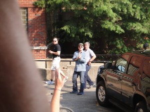 After a couple hours, everyone figured out where we were and joined behind us. Edge arrived first, waited in the car a while, and then went into the building. We noticed that Edge’s car had a Shelby County license plate, which is Memphis. Then we saw Willie Williams give Edge’s security guy a Sun Studio tee shirt. Were U2 in Memphis visiting Sun Studio and Graceland without me? Bono arrived next and started to walk toward us, but Brian pulled him back saying they didn’t have time. Adam and Larry arrived at the same time. Adam got out of the car first and went into the building. Larry then got out of his car and smiled and waved to the fans then went into the building. I didn’t get to speak to Larry, but this was the first time this tour I saw him arrive at the stadium and get out of his car and wave to us. Please watch my video of U2 arriving at Vanderbilt stadium in Nashville.