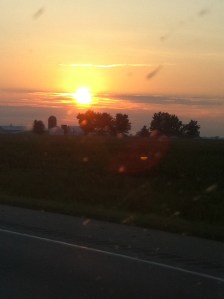 We stopped four times for gas, food, etc in addition to the two times we were stopped in traffic. Both traffic jams were on Route 70 West in Indiana about two hours apart, which was very frustrating. It was truly Carmageddon everywhere that day in July – the 405 in Southern California was closed, 240 in Memphis was down to one lane, and Route 70 West in Indiana was shut down twice. But if I hadn’t been delayed, I wouldn’t have seen the beautiful sunset – there is always good that comes with the bad.