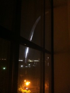 We finally arrived at our great Drury Plaza Hotel in St. Louis just past 9:30pm cst, over 16 hours later. As soon as I walked into the lobby, I realized this was the hotel I stayed at when I visited St. Louis eight years ago when I went to the Orioles-Cardinals game. The staff there was fantastic! They answered my questions immediately and quickly brought me what I needed, as well as checked me in quickly knowing I had a long day. To reward myself for my rough day of driving, I ordered a pizza from Imo’s for a late dinner – ‘an original St. Louis style pizza.’ I didn’t even know there was a ‘St. Louis style’ pizza. It is very thin crust with provolone cheese, but it tasted like cheddar was mixed in with it. It was no Ledo’s, but it was really good.