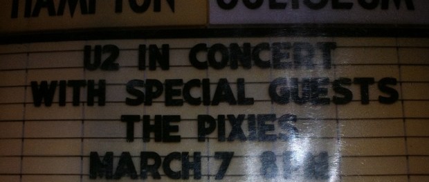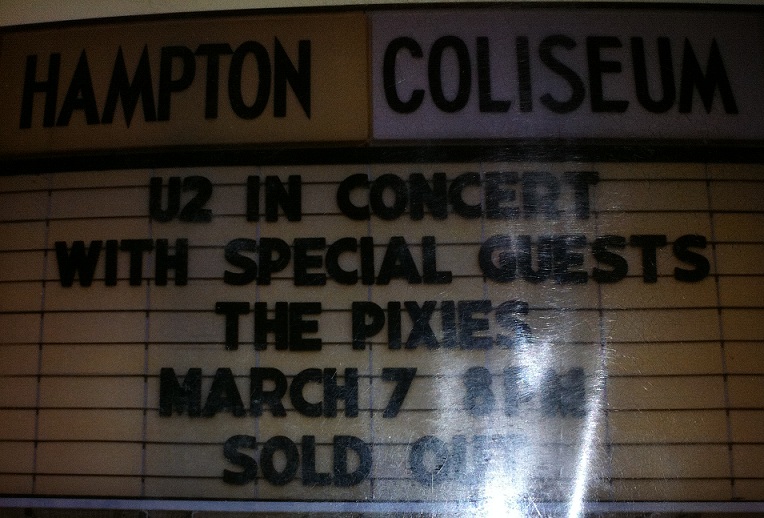 My musical journey on the road with U2 started in Hampton, Virginia. It was Saturday March 7, 1992, and I was 19. My first U2 show was the fifth of the ZooTv Tour. On the morning of March 7th, my best friend Cindy and I drove four hours south from Ellicott City, MD to Hampton, VA. Back in those days, there was no need to get to the city of a concert a day early because there was no general admission – we had actual assigned seats on the floor. We checked into our hotel and immediately walked across the street to the Hampton Coliseum, even though it was hours before the concert was to start. We saw a small circle of people with a big microphone hovering over them. As we got closer, we realized Bono was in the middle of that circle! I didn’t speak with him, but got close enough to take pictures and to hear what he was saying to everyone else. For my first U2 show, I was seated in the fourth row in front of The Edge. Bruce Hornsby and Phil Joanou walked in from behind the stage and passed by us on their way to the soundboard. The Pixies opened, and I did not like them at all. But then again, I just wanted to hear U2. I had waited five years since the release of The Joshua Tree to see them in concert!