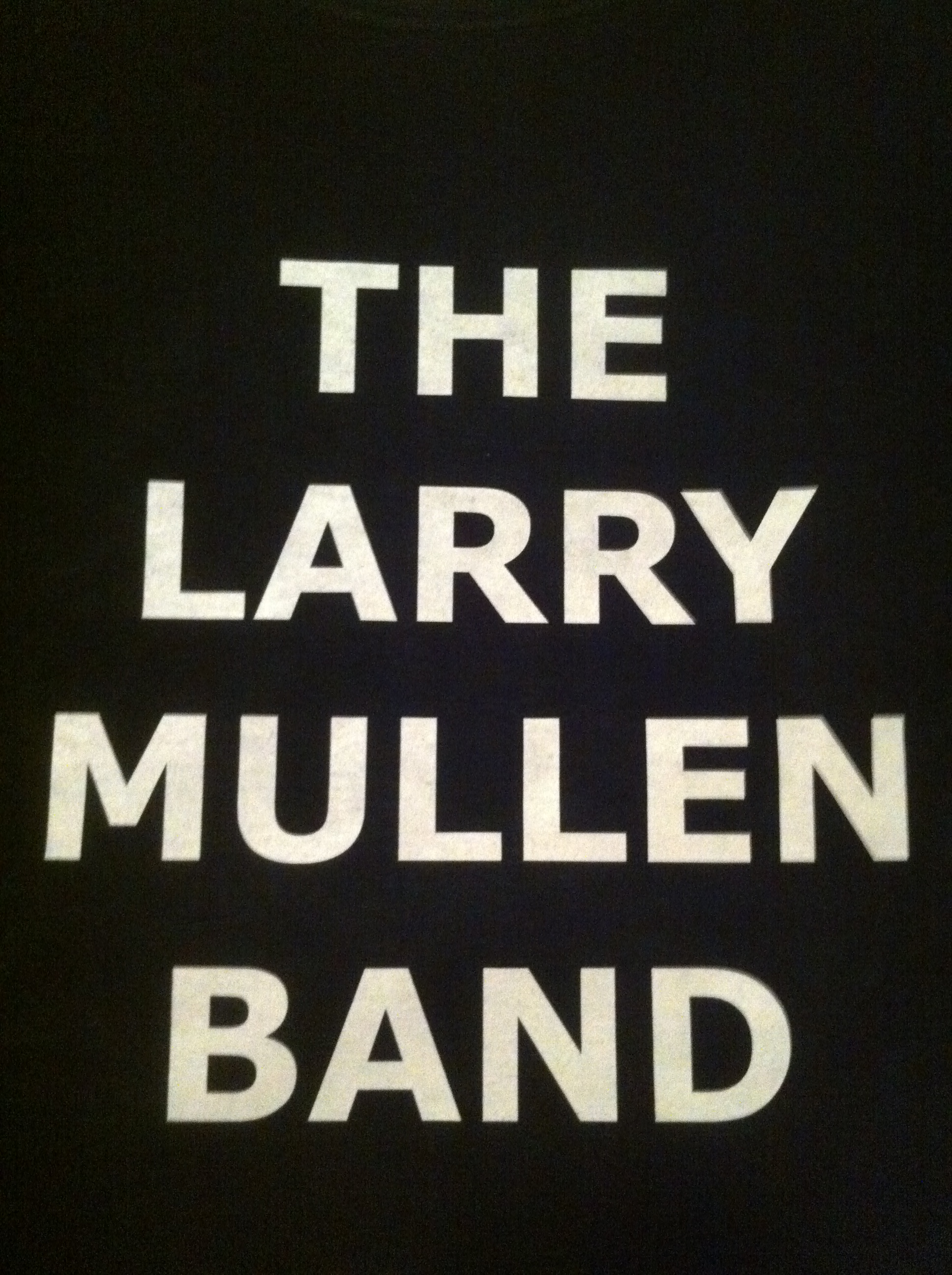 On the Elevation tour, I had three fantastic encounters with Larry, including the only time I have ever met him. But before any of those, a Larry Mullen Band shirt was thrown onto the stage in Philadelphia on June 11, 2001. Larry placed it on his drum kit where it stayed for the rest of the show. I found out later that Paola had thrown this shirt on stage. It was her birthday, she is a huge Larry fan and had made the shirt for him. Because I took pictures of this and posted them online, Paola, Jenny, Tasha and I became friends. Paola made us all Larry Mullen Band shirts, which I wear to every U2 show. I just made three replicas so I don’t have to wash the same one over and over.