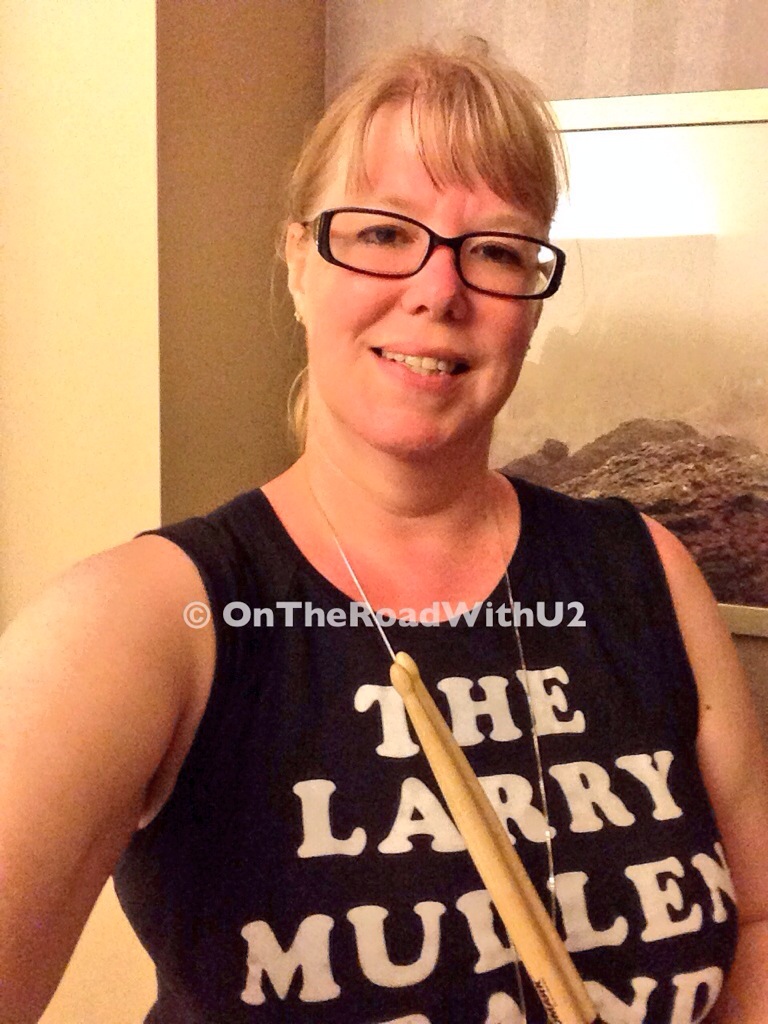 After walking around the Pepsi Center to make sure we didn’t miss U2 leaving (they had already left before we were even out of the arena), I was back in my hotel room by 11:30pm. Hot and sweaty, I just sat on my bed in the quiet in awe of what just happened. For the first time in a long time, I didn’t take notes during the show or live tweet. I didn’t even take much video or too many pictures. I was going to periscope some of the show, but I was just SO into it and just enjoying myself. Denver1 was such an amazing show. It was a standard set list, but such a great energy. I honestly have’t found that excitement and vibe since the Elevation Tour 14 years ago. I met Larry 14 years ago and then today. Larry gave me a drumstick (and champagne bottle) 14 years ago and then today. I think the original “Larry Mullen Band” shirt is lucky – good things happy when I wear it. My tradition this tour is to wear it at each city’s opener.